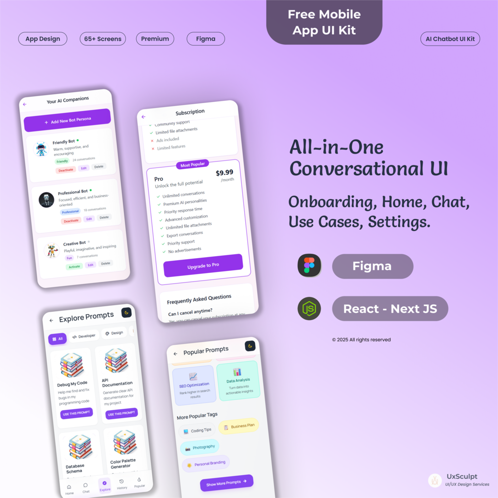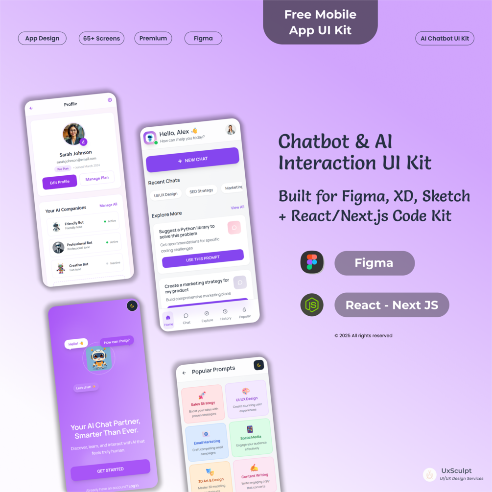 The Chatbot & AI Interaction UI Kit is a premium-quality design package built in Figma — and it’s completely free.