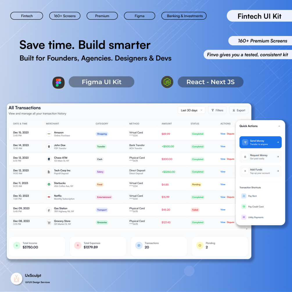 - Designed for founders, startups, SaaS teams, and agencies who need professional fintech UIs without risk